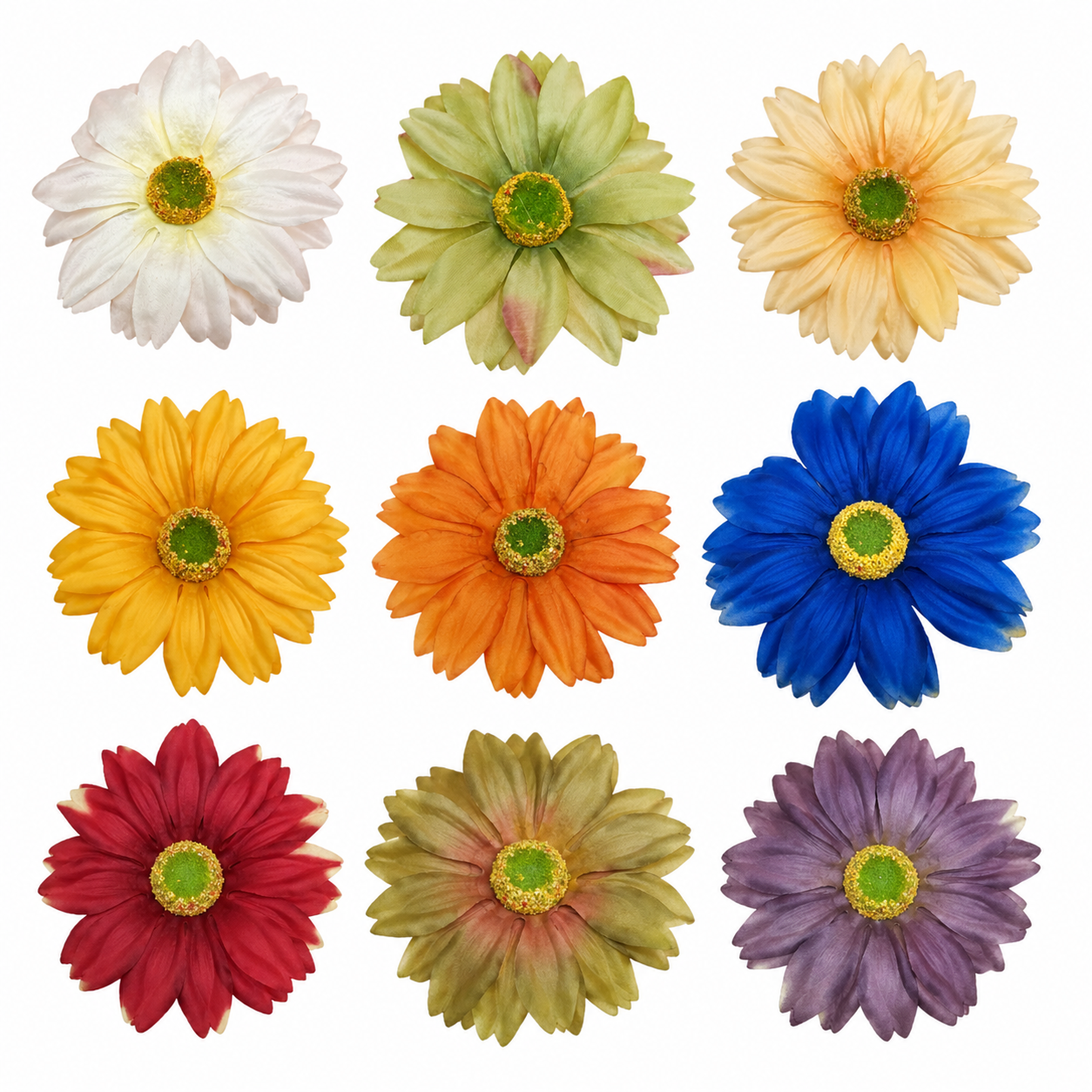 Każda główka kwiatu została wykonana z dużą dbałością o detale – od struktury płatków po realistyczny środek. Subtelne przejścia kolorów i naturalne ułożenie płatków sprawiają, że kwiaty wyglądają jak żywe. W ofercie znajdziesz różnorodne, nasycone barwy – od klasycznej bieli i żółci, przez intensywny pomarańcz i czerwienie, aż po eleganckie odcienie niebieskiego i fioletu.