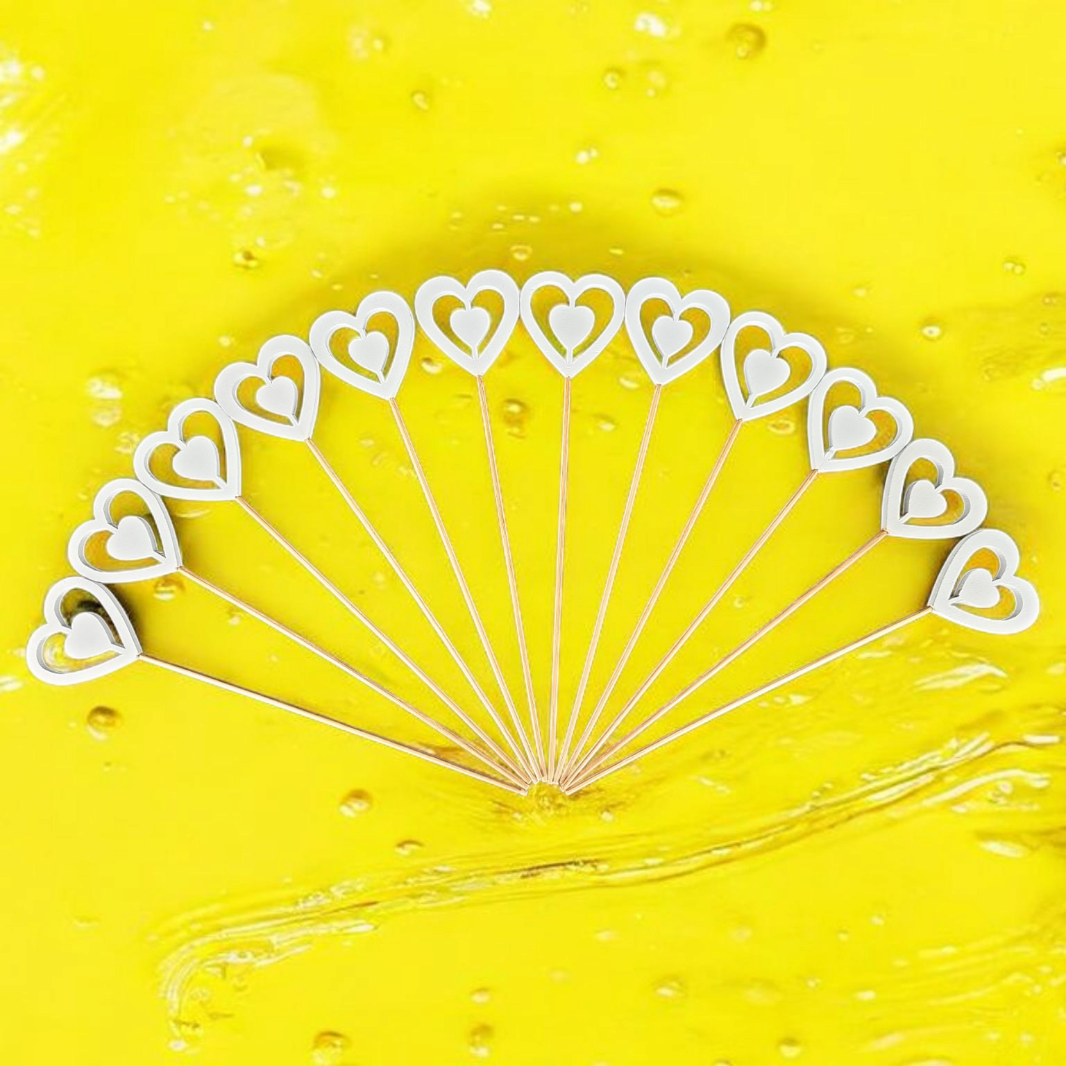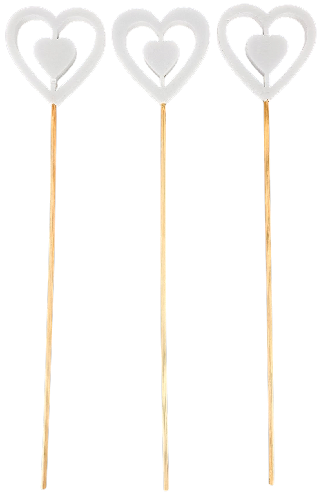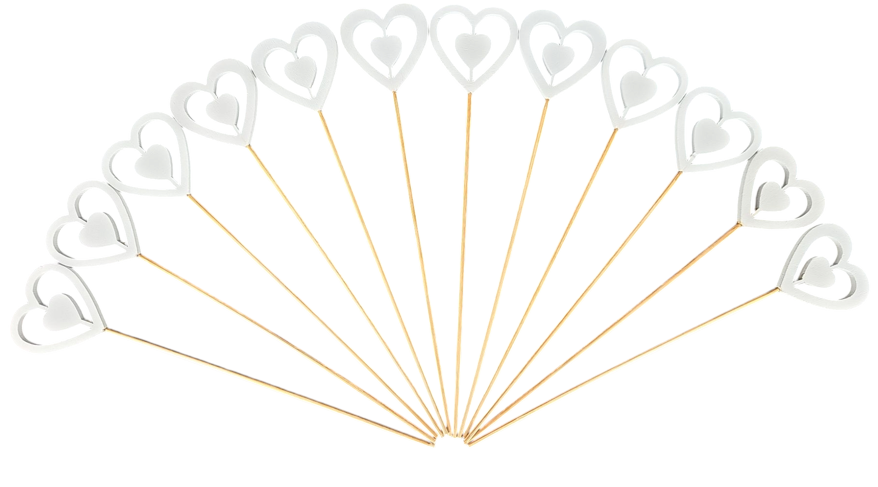 Dekoracja w kształcie serca na patyku – biała | 5 × 5 cm (23 cm z patykiem) | zestaw 12 sztuk