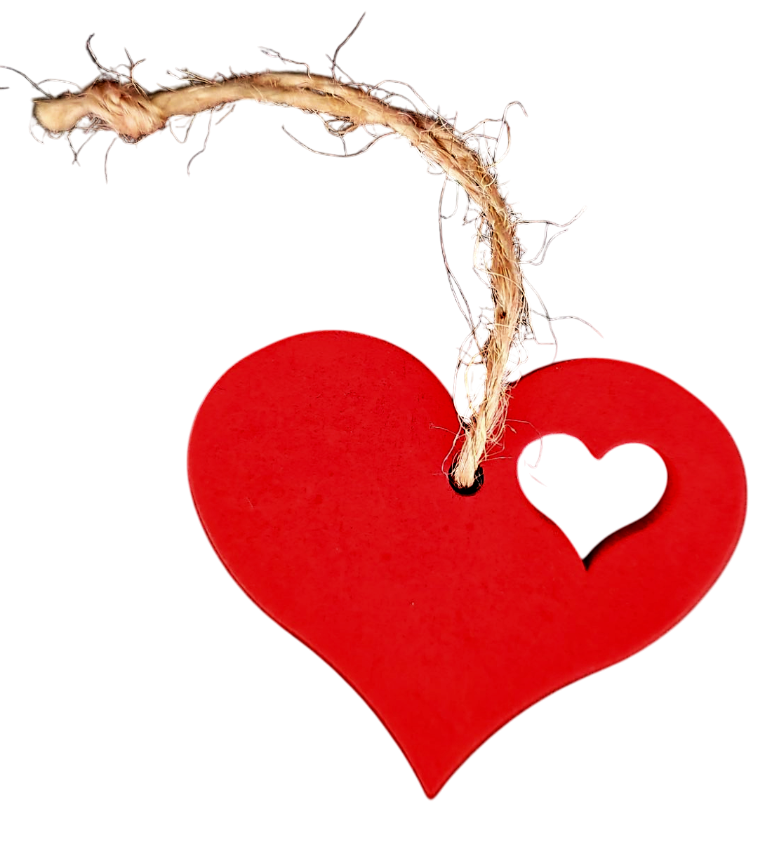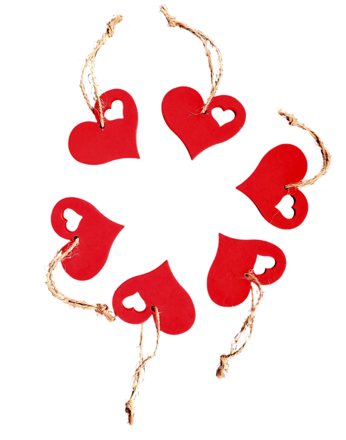 Dekoracja wisząca w kształcie serca – czerwona | 5 × 4,5 cm (10 cm z zawieszką) | zestaw 6 sztuk