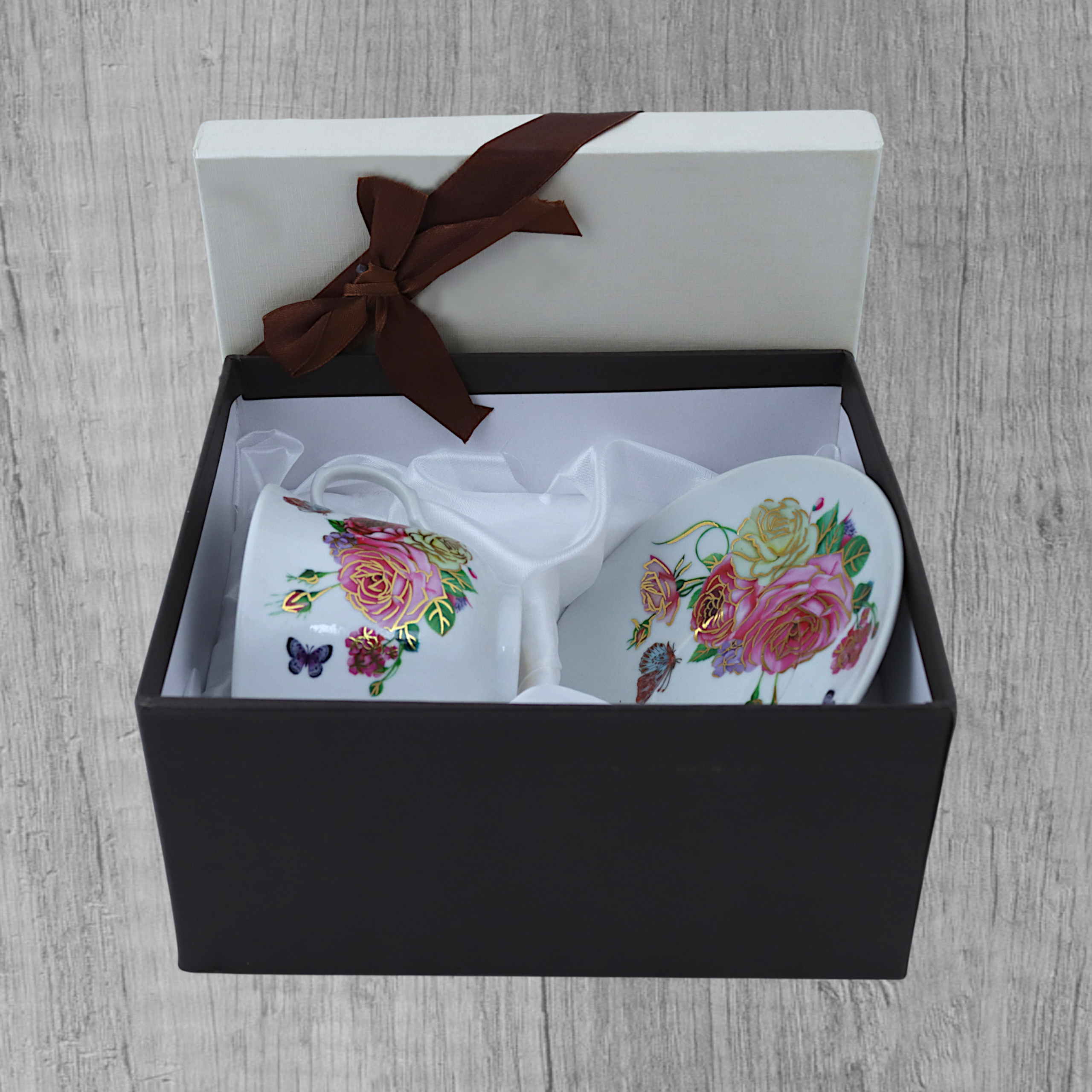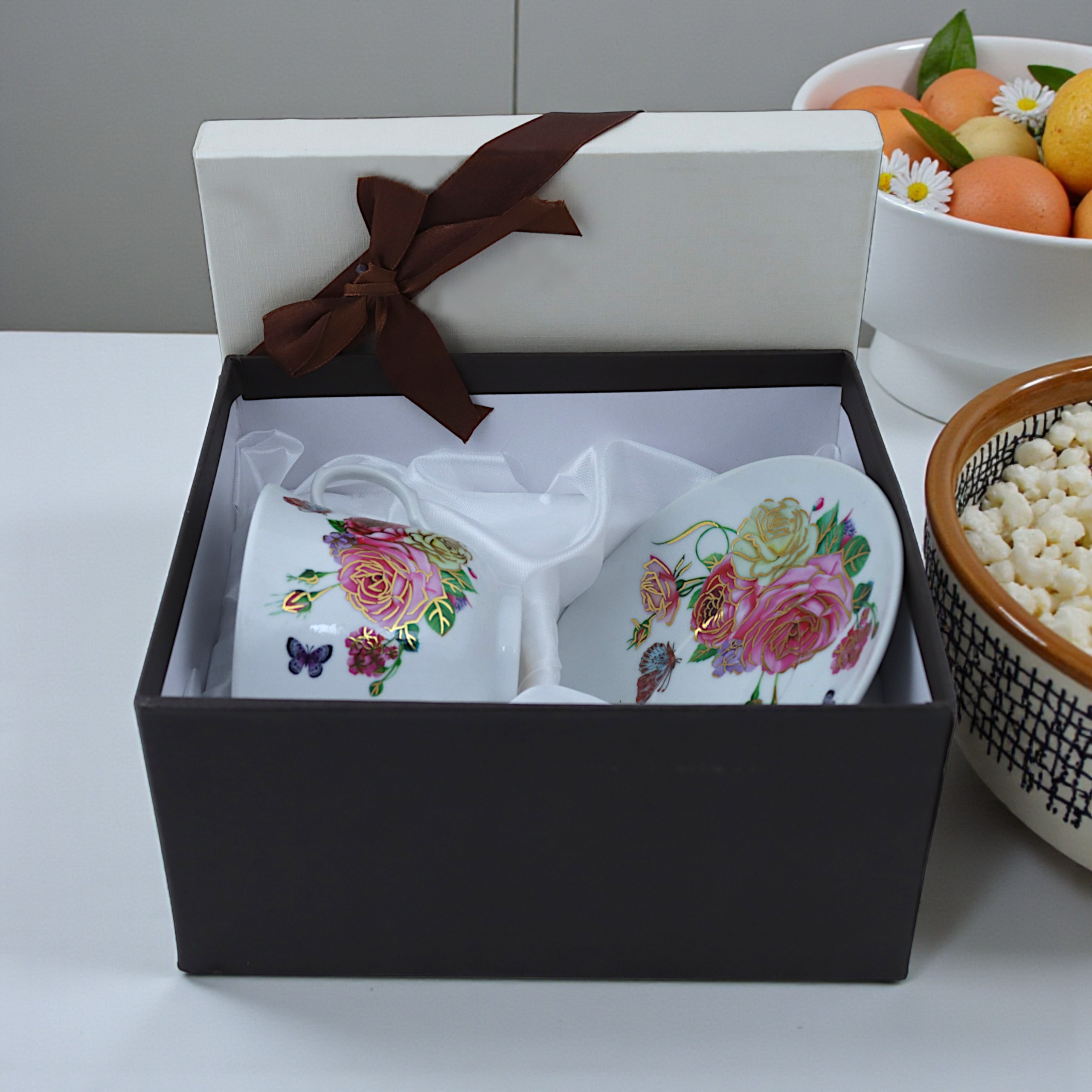 - Zestaw filiżanka + spodek w eleganckim opakowaniu ozdobnym
