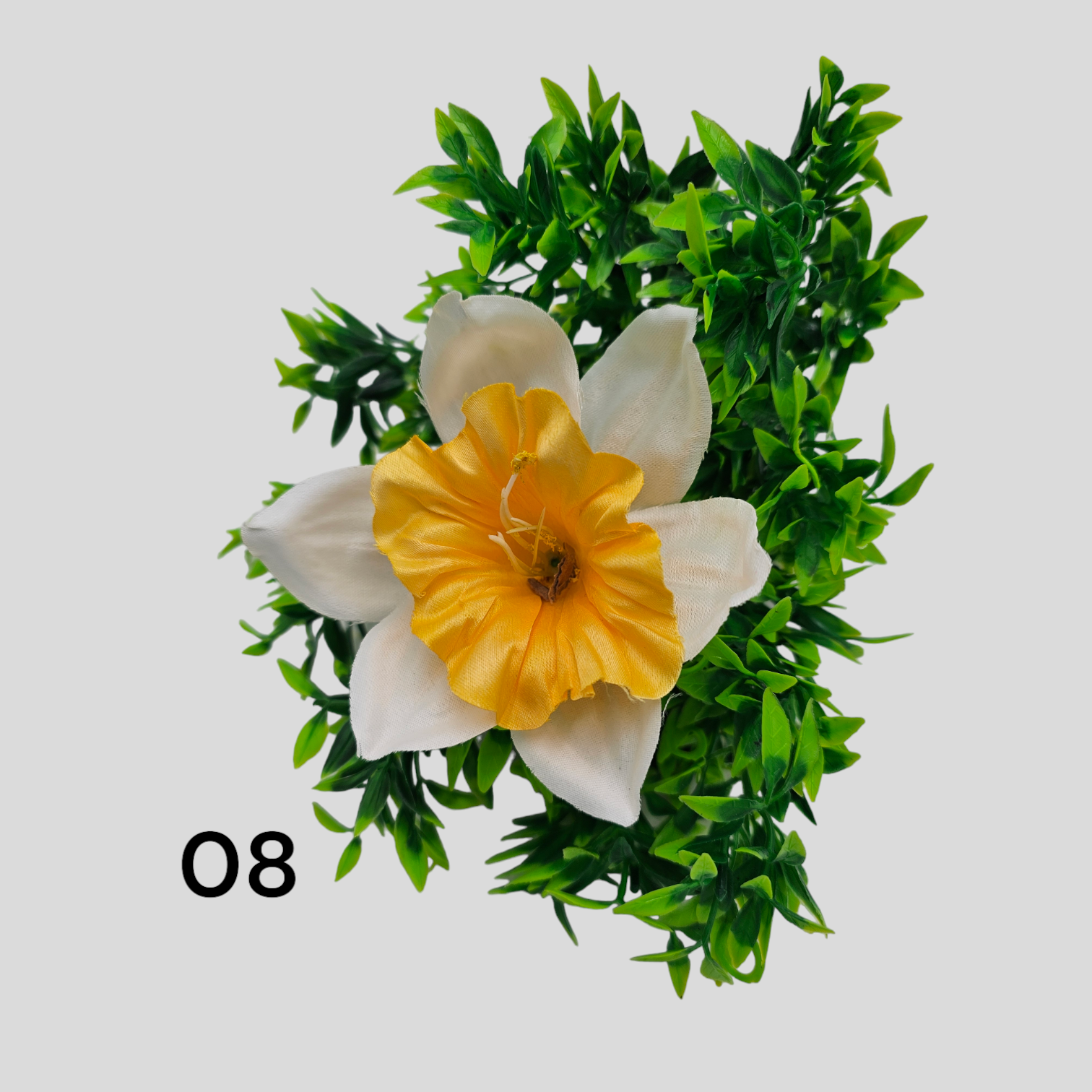 Każda główka została starannie wykonana z wysokiej jakości materiałów, wiernie odwzorowujących strukturę i detale prawdziwych żonkili. Intensywne, słoneczne kolory oraz realistyczne płatki sprawiają, że kwiaty prezentują się niezwykle autentycznie – zarówno z bliska, jak i w większych kompozycjach.